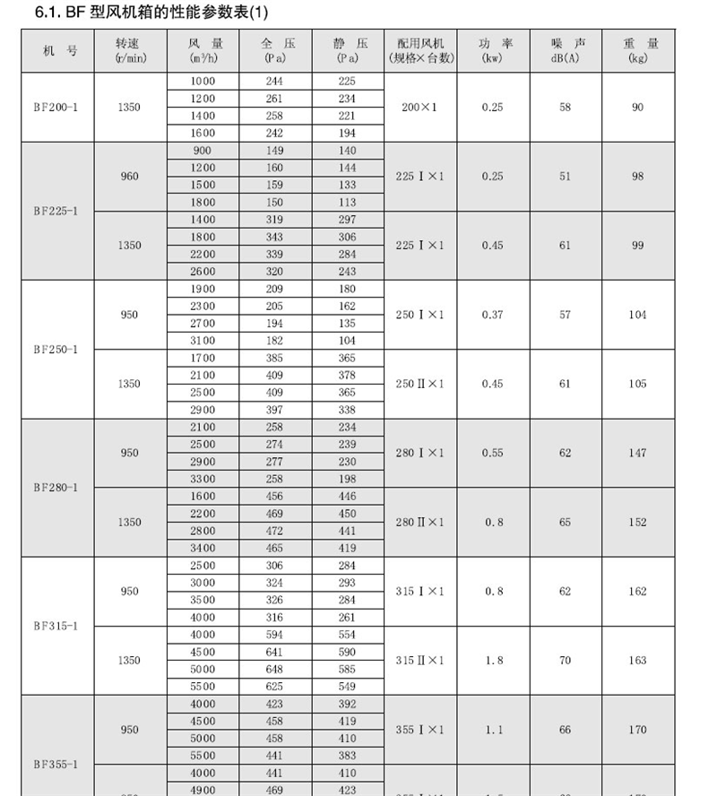 1.1. BF型風機箱葉輪采用前傾式多翼葉輪和低噪聲外轉子電機,電機與葉輪為直聯,風機噪聲比皮帶傳動式風機箱低。風機安裝形式分臥式(W) 和立式(L)兩種。