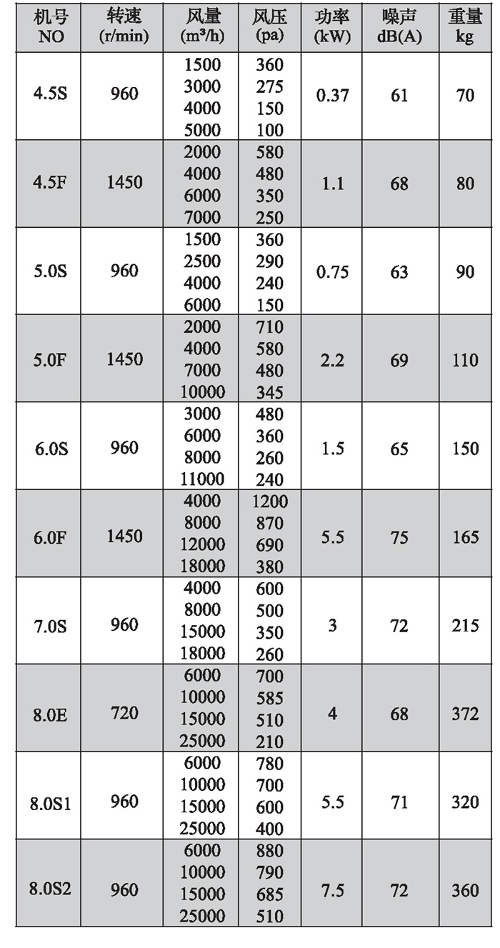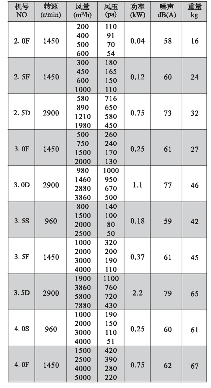 注:雙速風機重量參考同號中高速風機的重量。