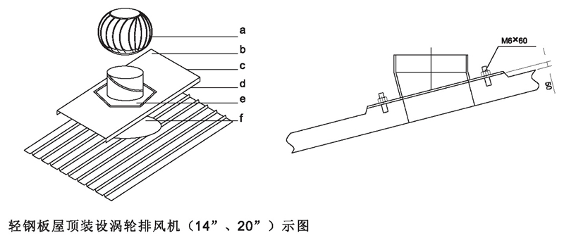 DWT-IV型(無(wú)電機(jī))屋頂渦輪排風(fēng)機(jī)屋面安裝示圖說(shuō)明