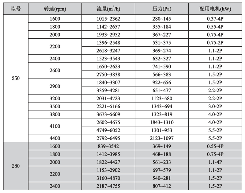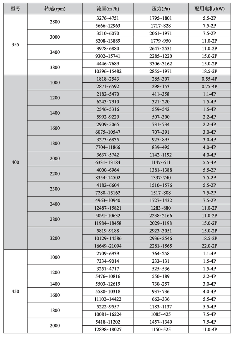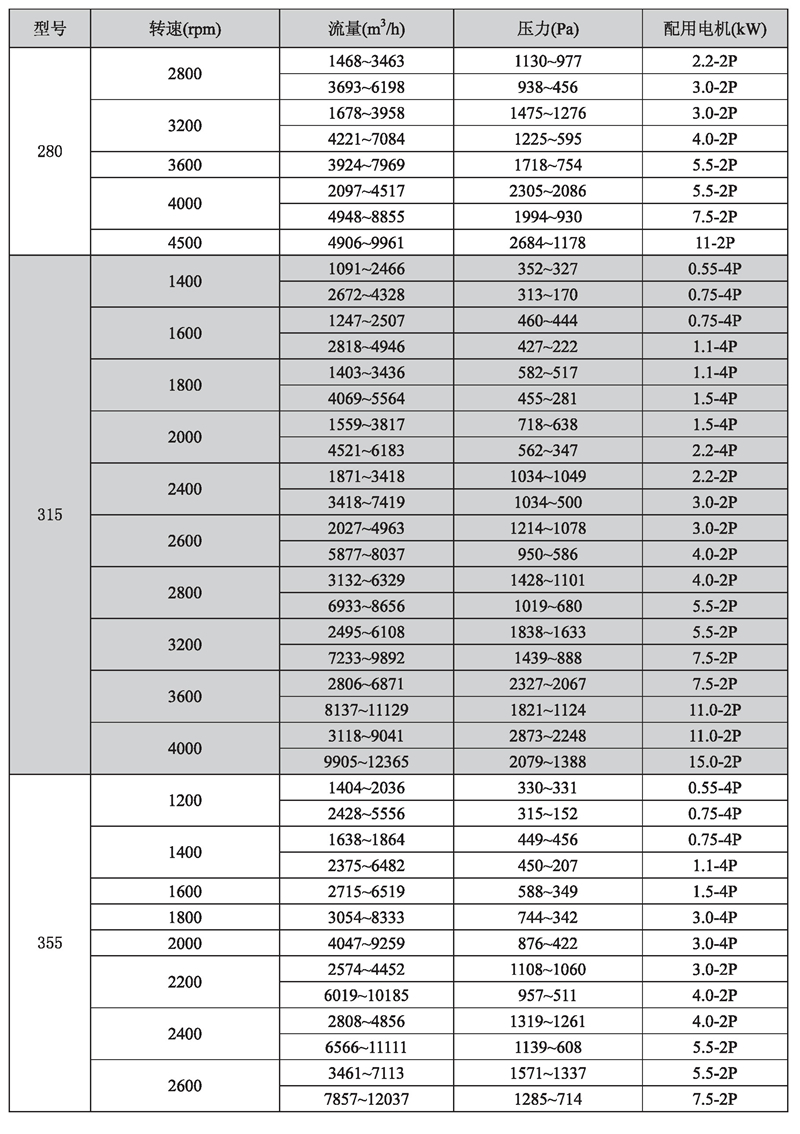 輸送介質(zhì): HTFC-V 系列風(fēng)機(jī)輸送介質(zhì)為空氣及不自然、無腐蝕、不含粘性、附著性、介質(zhì)所含塵土及顆粒物不大于150mg/m3的其他氣體。氣體溫度一般不超過80℃。